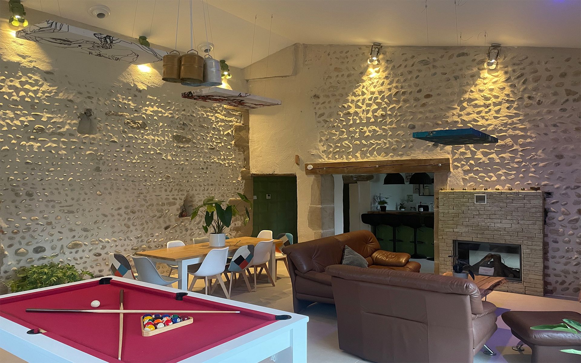 Mur en pierres et objets décorations diverses vous feront apprécier le charme chic bohème.
